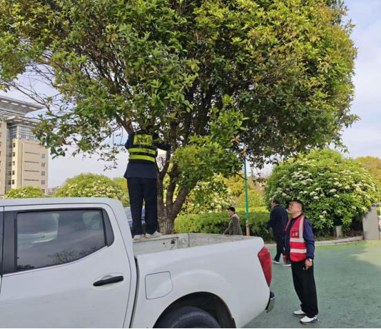 修剪现场,党员们率先垂范,手持修剪锯、高枝剪等工具,分工协作、密切配合。针对车位上方低垂的枝条,工作人员小心翼翼地分段修剪,避免枝条掉落损坏周边车辆;对于生长过于茂密、遮挡视线的侧枝,逐一进行清理,确保行车通视线清晰通透。修剪下来的树枝枝叶,工作人员及时打包清运,做到 “随剪随清”,保持停车场环境整洁有序。经过一天的紧张作业,原本拥挤杂乱的停车环境变得整洁规范。